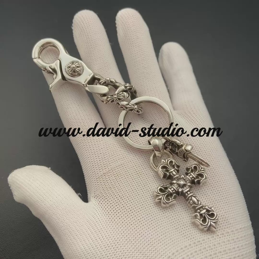 Fancy Link Key Chain With XS Filigree Cross And Dagger Key Ring – The Details